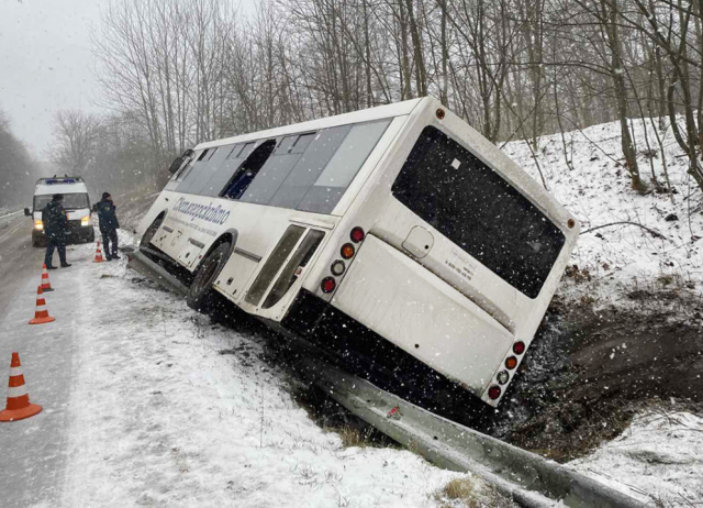 Под Калининградом экскурсионный автобус с 40 пассажирами съехал в кювет